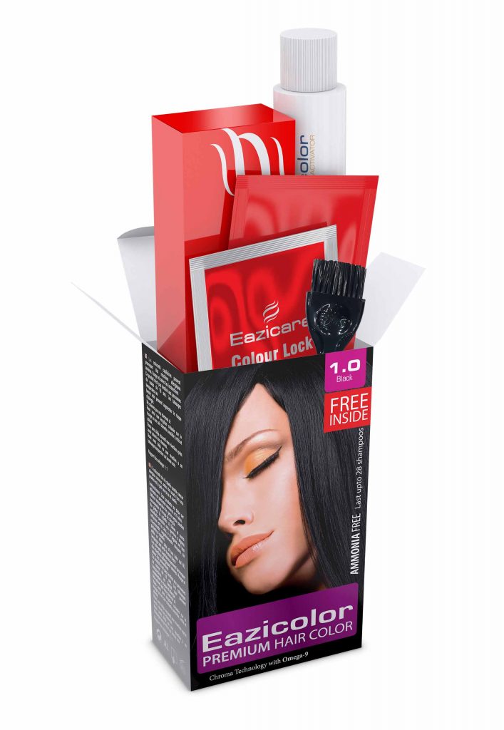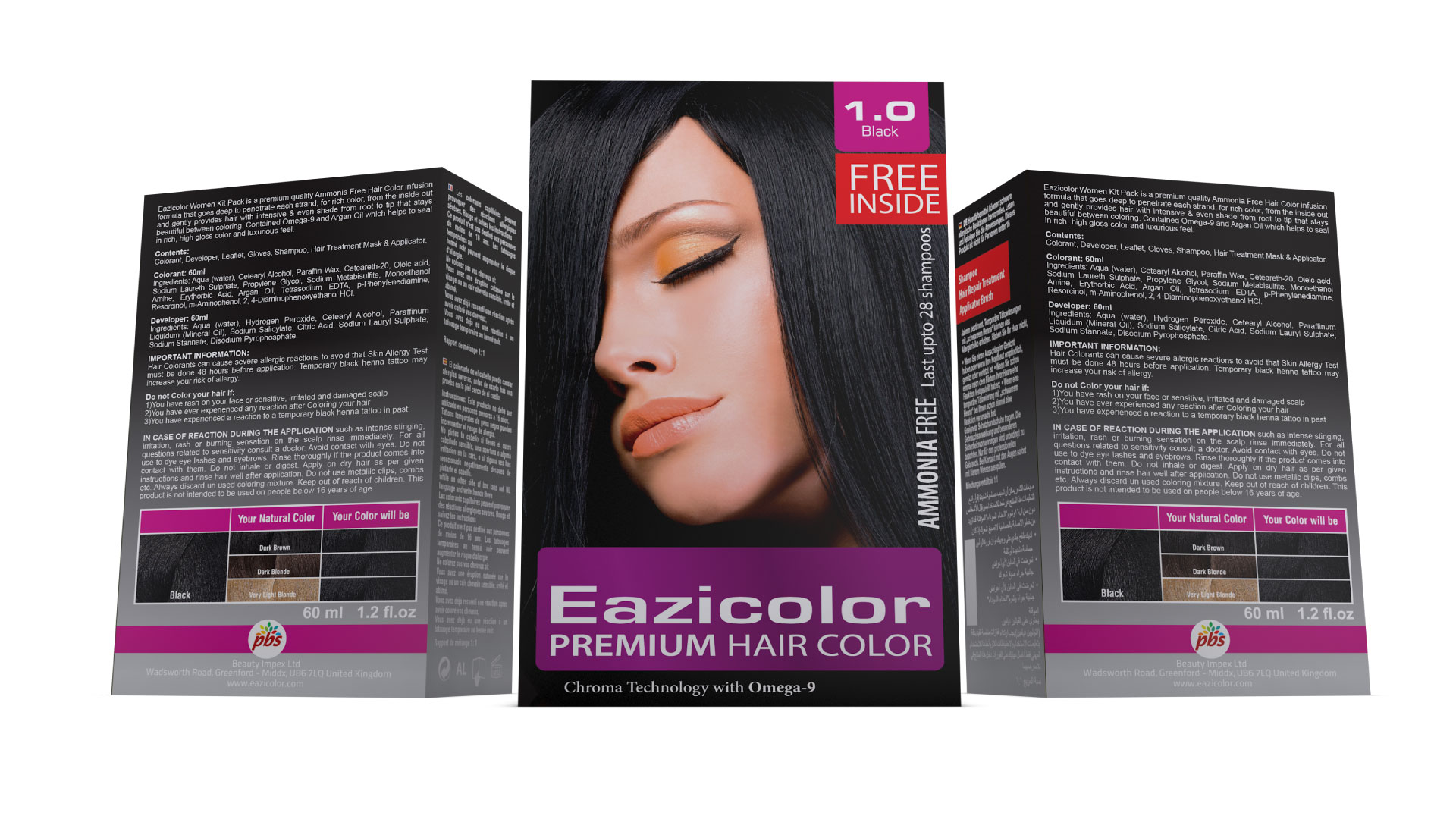 Eazicolor Women Kit Pack is a premium quality Ammonia Free Hair Color infusion formula that goes deep to penetrate each strand, for rich color, from the inside out and gently provides hairs with intensive & even shade from root to tip that stay beautiful between coloring. Contained Omega-9 and Argan Oil which helps to seal in rich, high gloss color and luxurious feel.